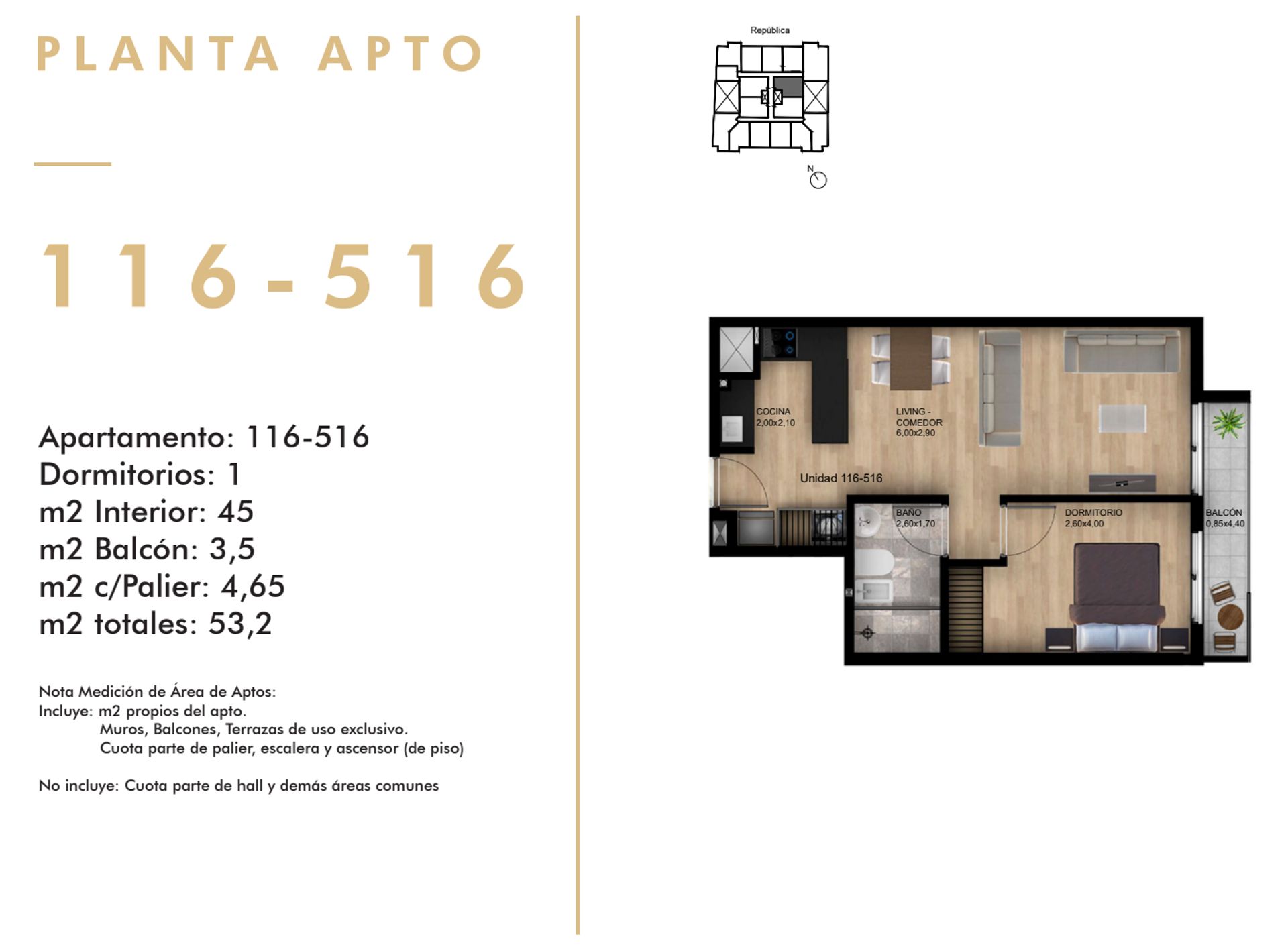 Precio:137.603 Dolares Dormitorios: 1 Baños: 1 Tamaño: 0 m² Conservación: Piso: 1º - sin Ascensor Aire acondicionado: no Estacionamiento/s: 0 Portero: Calefacción: Cocina: Bodega: no Inmueble exterior: Patio: no Terraza: no Piscina:
